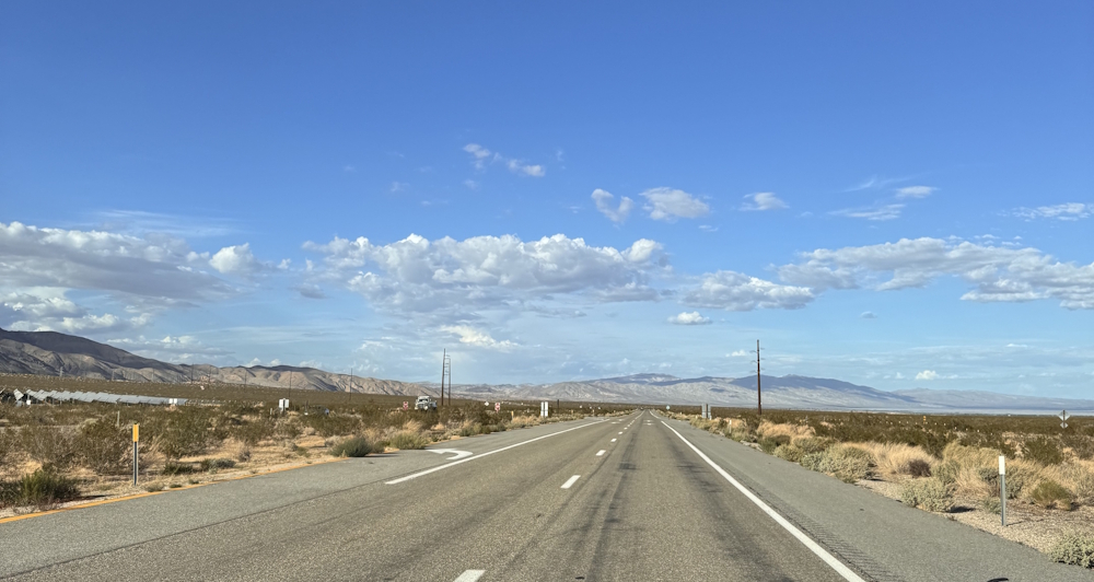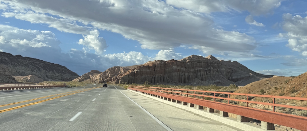 In Mojave am Airliner Storage (wieviel ausrangierte Flieger hier standen, unglaublich!) hielten wir noch einmal zum Tanken bei „Kwik Stop“, der Strolch musste gefüllt werden und auch Luis war jetzt dran. Die nächsten Meilen sollte nicht mehr die Möglichkeit zum Tanken sein. Die restlichen 26 Meilen gingen dann gefühlt immer geradeaus, schließlich erreichten wir gegen 17 Uhr den Red Rock Canyon SP unser heutiges Tagesziel.