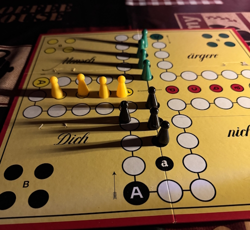 Wieder stand eine Partie "Mensch-ärgere-Dich-nicht" an, lief heute schon besser bei mir, aber immer noch blieb nur der dritte Platz