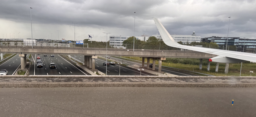 OK, nach 45 Minuten war auch das Problem behoben, wir stellten uns in den Stau auf der Runway an und waren tatsächlich um 17 Uhr auf dem Weg nach Amsterdam, wo wir um 18:45 Uhr den Boden berührten.