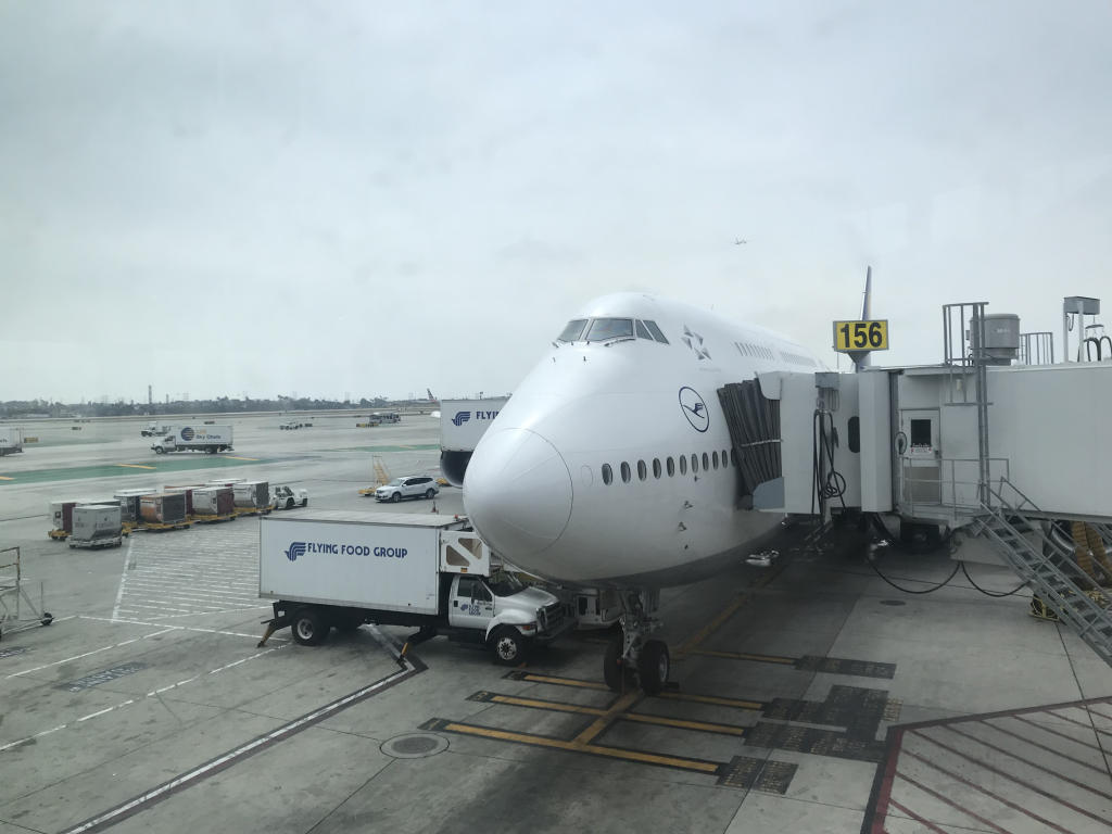 Gegen 11:30 Uhr standen wir am Tom-Bradley-Terminal und checkten die Koffer ein, erhielten von Lufthansa noch ein (unmoralisches) Angebot einen Tag später zu fliegen, welches wir aber ablehnten...![]()