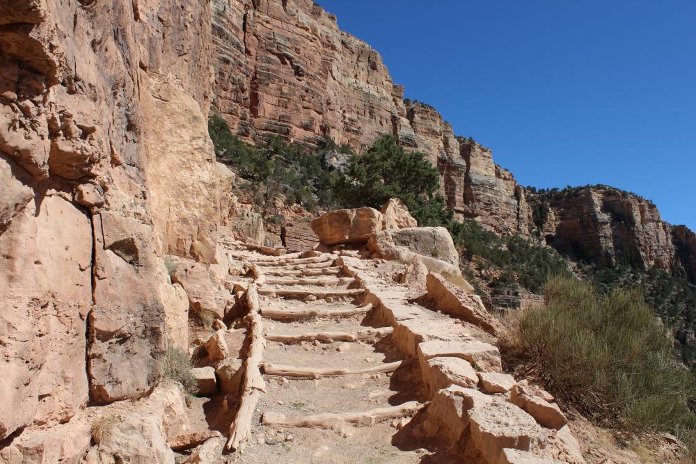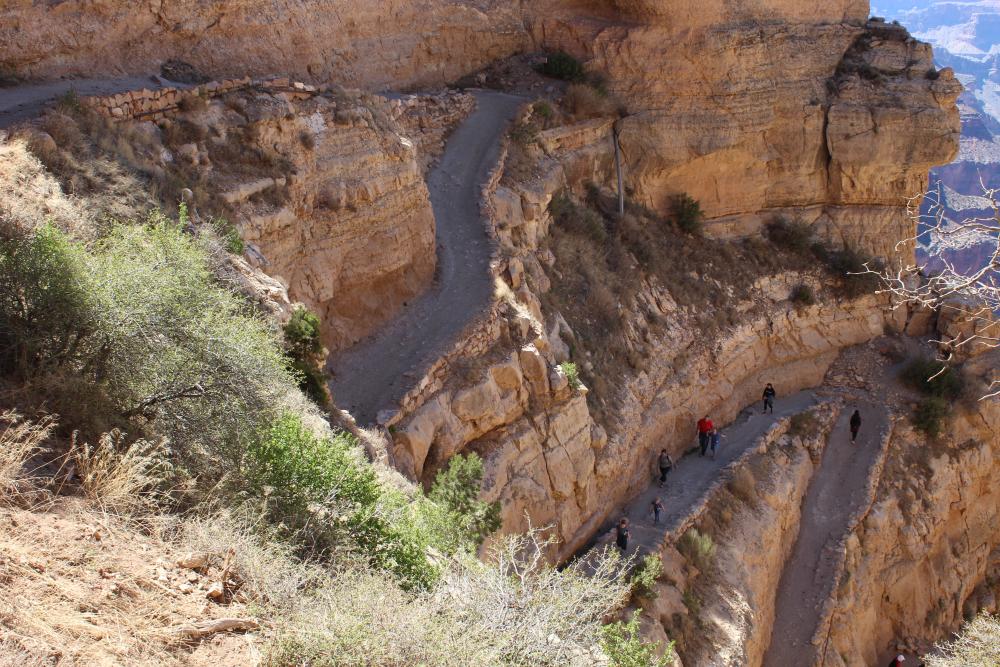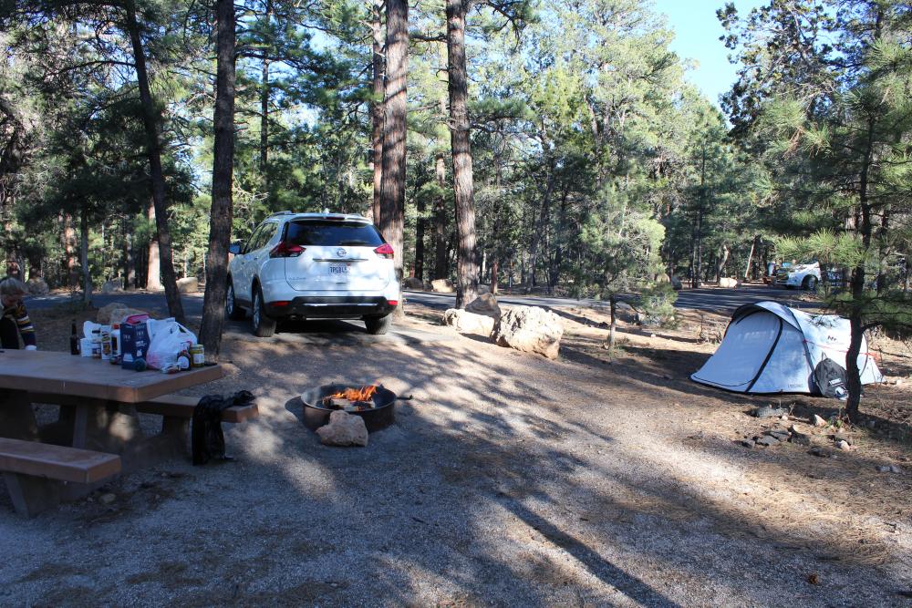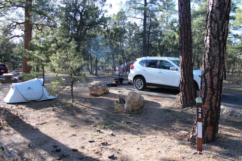 Anschließend haben wir unseren Campground gesucht und stellten unser Zelt auf und das Auto ab. Auch hier wieder alles fußläufig zu erreichen und die öffentlichen Toiletten sehr sauber und ordentlich. Mit dem Shuttle-Bus ging es dann zum Kaibab Trail, den wir bis zum Ohh-Ahh-Point runtergegangen sind, mehr wäre an diesem Tag nicht möglich gewesen.