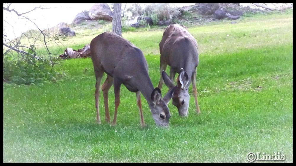 Allabendlich kommen bis zu 40! Deers und lassen sich das frische grüne Gras schmecken!Wir wurden von Chuck,dem Campground Host, gewarnt bloss nichts essbares ausserhalb des Campers liegen zu lassen-die würden nämlich alles fressen.....