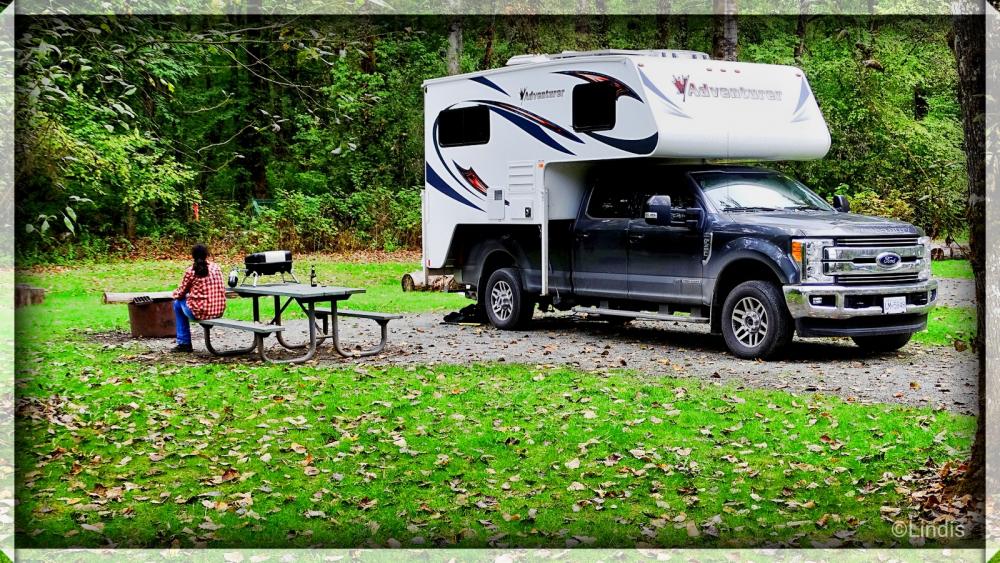 Vom Campground selbst sind wir sehr angenehm überrascht,für einen so stadtnahen Campingplatz gibt es ziemlich viel Grün hier.Toll ist auch das es eine Feuerstelle gibt-und die Möglichkeit Feuerholz zu kaufen!So können wir nach dem leidigen putzen und packen noch den letzten Abend am Campfire geniessen.