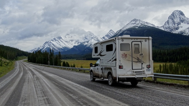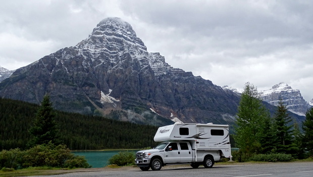 Wir sind wieder begeistert vom Icefiields Parkway-eine wunderschöne Straße.Auch wenn es nun mit unserer Forestry Trunk Road Einsamkeit vorbei ist........