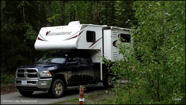 Über den East Parks Hwy/Glenn Hwy fahren wir auf der Eklutna/Eklutna Lake Road vorbei an Rochelle's Ice Cream Stop(ein Eis war eigentlich eingeplant-aber bei dem Wetter.....)zu unserem Campground.Alle Plätze sind noch frei,wir suchen uns ein nettes Plätzchen ganz hinten aus-trotzdem kommt später noch ein Womo an das sich genau neben uns stellt......![]()