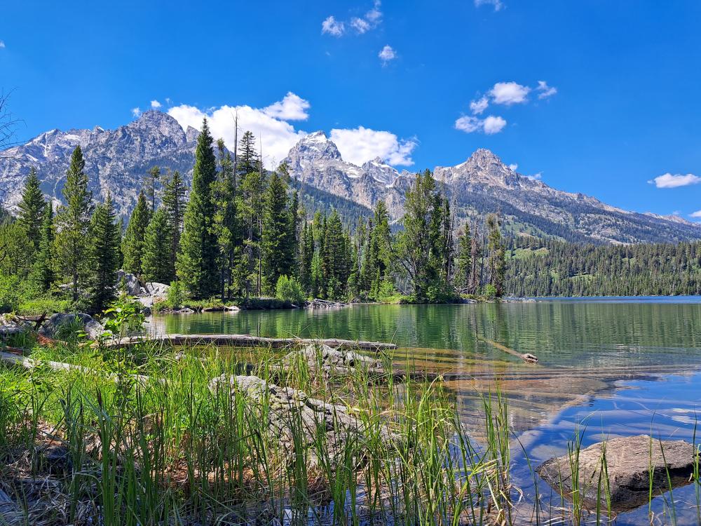Der Weg war gut zu schaffen und ich würde ihn als moderat einstufen denn einige Höhenmeter legte man auch zurück. Es war dann mittlerweile schon nach 15 Uhr und wir wollte noch beim Jenny Lake stoppen. Dort war der Parkplatz auch sehr voll und man konnte sehen das vorher auch bis weit an der Straße entlang geparkt wurde, halt einer der Top Spots im Park. Wir ging einmal runter zum See einige hundert Meter am Ufer entlang und dann auch schon wieder zum Womo zurück. Wir waren irgendwie schon ziemlich geschafft und wollten ja auch noch bis zum Yellowstone. Auf der weiteren Fahrt hatte man einige schöne Blicke auf die Seen und das mit den Tetons im Hintergrund war schon mega schön. Also wer gern wandert oder auf die Seen möchte kann gut und gerne einen weiteren Tag hier verbringen. Wir sind dann noch weiter bis zum Yellowstone NP und die Fahrt zog sich dann doch noch etwas. Fast 1 ½ Stunden waren wir noch unterwegs für die gut 50 Meilen.
