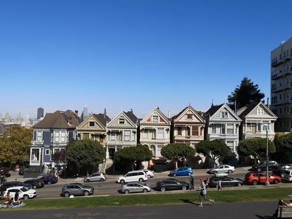 Dann ein paar Stationen mit der MUNI Bahn und weitere mit dem Bus bis zum Alamo Square. Auf der Wiese saßen schon wahnsinnig viele Leute und ebensoviele posierten vor den Painted Ladies. Wir gesellten uns dazu und machten unsere Fotos. Dort besuchte ich dann das bisher ekelhafteste öffentliche Klo der Reise. Ein älterer Mann war auf der Wiese vor den Painted Ladies so aus dem Häusschen über ihren Anblick das er mit nur einem Tanga bekleidet dort durch die gegend hüpfte und für Fotos ebenfalls gern in allen Stellungen bereit stand....![]()