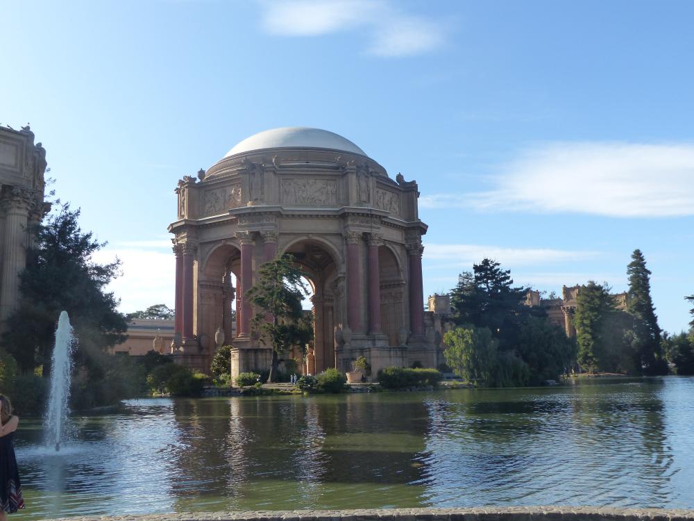Dann fuhren wir, ich glaube 18 Stationen, mit dem MUNI Bus durch die Stadt um zum Palace of Fine Arts zu gelangen. Das ist eines der weniger schönen Dinge in San Francisco im Gegensatz zu europäischen Städten, eine gut ausgebaute U, S-Bahn oder Tram fehlt. Mit dem Bus der gefühlt an wirklich jeder Ecke hält ist man ewig unterwegs.