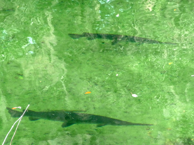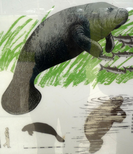 Wir gehen Richtung Schiffsanleger und da tauchen sie auf. Fünf Manatees schwimmen ganz ruhig nebeneinander Richtung Quelle. Da das Wasser sehr klar ist, sehen wir die Tiere deutlich. Immer wieder tauchen sie zum Luft holen auf. Diese ungefähr 3 m langen, korpulenten Tiere gleiten elegant durch das Wasser.