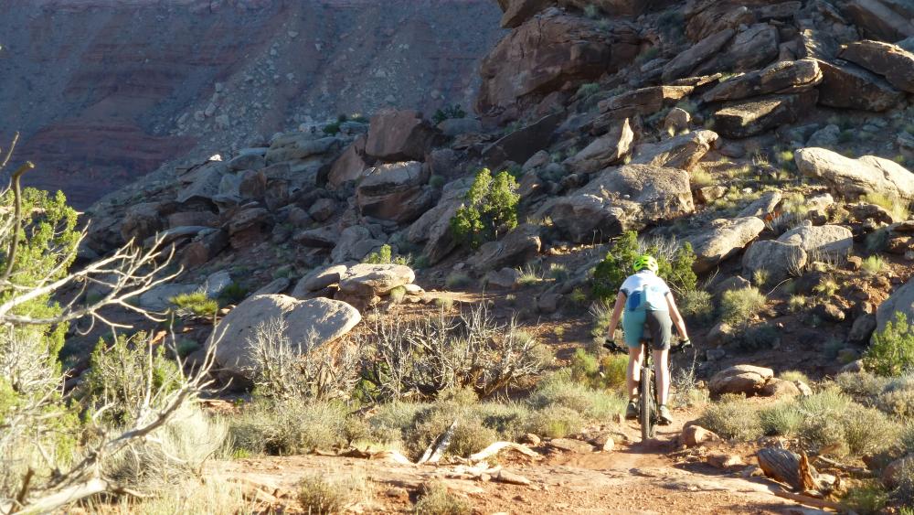 In der Früh ging es weiter nach Moab, am Weg besuchten wir noch die Wohnhöhle "hole in the rock", kurzer Stopp beim Wilson Arch und weiter zum traumhaften Corona Arch. Am Abend holten wir unsere reservierten Mountainbikes ab und fuhren in den "Moab Brands" die Bar Loop B und die Bar Loop M.