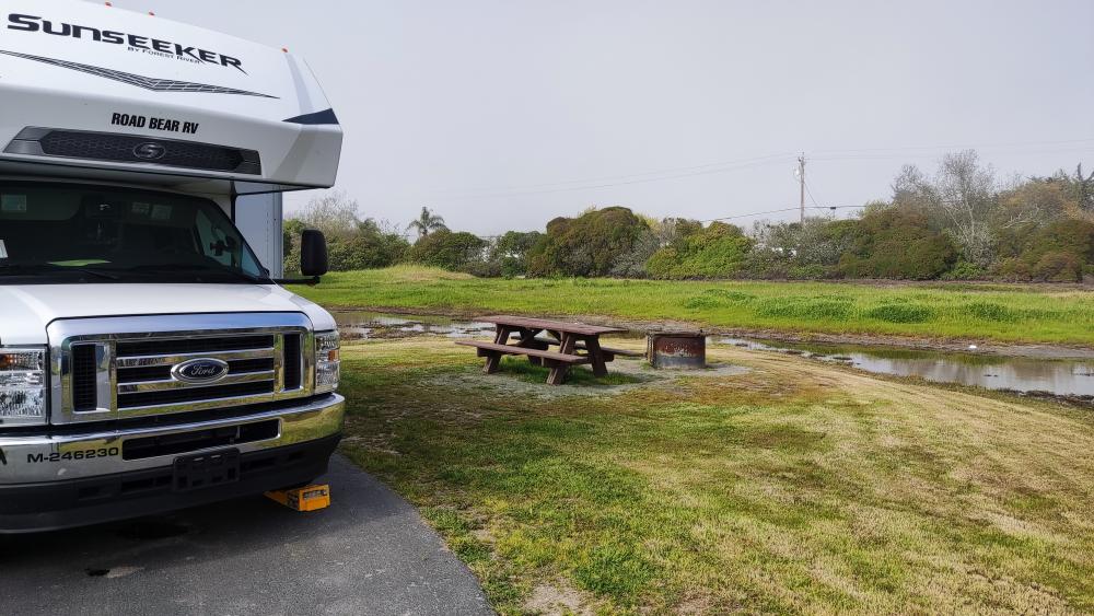Unser nächstes Ziel ist Pismo North Beach CG. Die Fahrt dauert circa 2 Stunden. Es ist sonnig, wird aber immer kühler, je näher wir zum Ozean kommen. Die letzten Minuten vor dem CG fahren wir parallel zur Küste und sehen wie der Nebel sehr schnell, innerhalb von zwei Minuten, seitens Ozean angeflogen kommt und alles verhüllt.