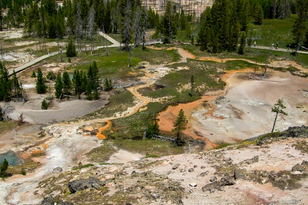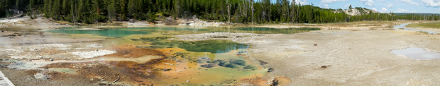 Leider wurde einer der Boardwalks, der quer durch das Feld geht, gerade neu gebaut, so dass die Runde zum Whale's Mouth und Whirligig Geyser nicht möglich war und wir kurz hinter dem Crackling Lake umdrehen mussten. Aber auch mit halbem Weg sehr eindrucksvoll. Und auch die Übersicht über diesen Teil des Basins ist klasse.