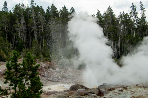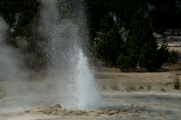 Danach ging es dann auf den viel ruhigeren Back Basin Weg, auf dem der Vixen Geysen genau richtig zu spucken begann. Kaum waren wir vorbei, war da auch wieder Ruhe.