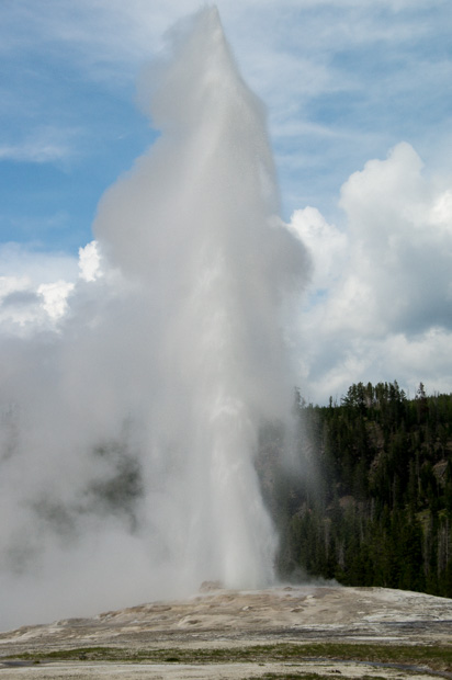 Das Gewitter verzog sich passend zur Eruption von Old Faithful, die aber eher klein war und bei vielen der massenhaften Zuschauer wohl eher Enttäuschung hervor rief.
