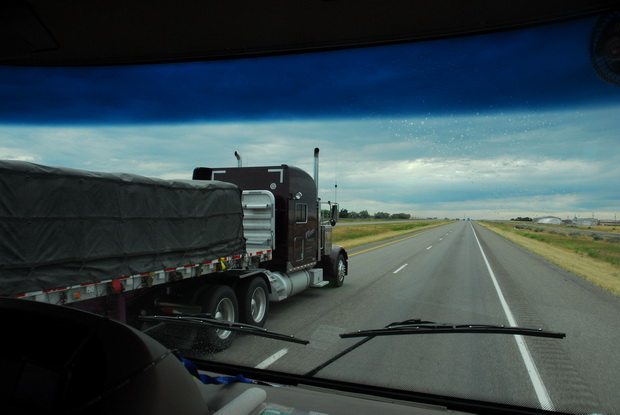 Diese Laster sind wirklich eine Wucht - ich staune immer wieder, wenn so ein Ungetüm rangerauscht kommt, oftmals mit zwei Hängern. Im PKW empfindet man das teilweise beängstigend, vorallen, wenn links und rechts so ein Monster fährt (wegen dem fehlenden Rechtsfahrgebot in USA sehr oft erlebt).