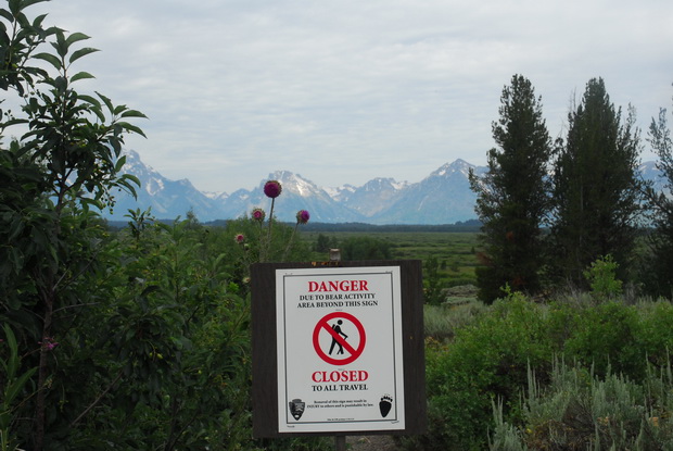 schon nördlich von Colter Bay Village finden die Warnschilder an, sogar mobile Blinklichtanlagen standen auf der Strasse mit Hinweis nicht auszusteigen und Bären samt Nachwuchs, die die Strasse kreuzen, nicht zu überfahren. Wir haben aber keinen Bären gesehen.