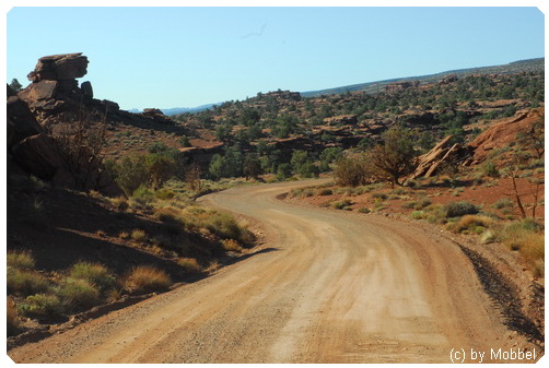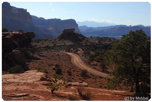 vom Panorama Point aus Blick auf die Gravel Road zum Goosenecks Overlook: