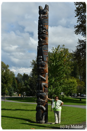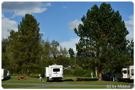 Wir checken beim Campground Ksan Hazelton gegen 14:15 Uhr ein, bekommen die Site 2 mit full-hookup, wo wir Eddy-Ad endlich an den Strom anschliessen, damit die Batterie wieder richtig geladen wird. Es hat geholfen, danach war die Voltanzeige immer ok, auch wenn wir gelegentlich mit dem Generator nachgeholfen haben, wenn wir Spannungsabfall beobachtet haben. Die full-hookup Sites sind bis zum abend alle belegt, es schienen auch die meisten davon reserviert gewesen zu sein, aber dry Sites gibt es noch jede Menge.