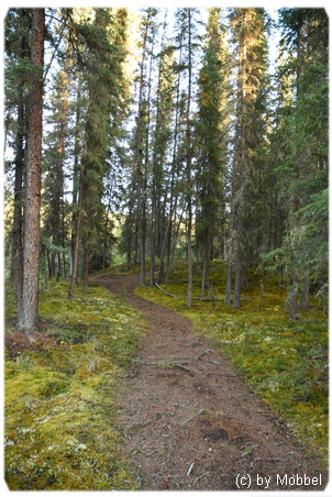 der Creek und der schöne Wanderweg - nur Ausweichmöglichkeiten gibts nicht wenn plötzlich der Bär hinter einem steht und man lieber zuürck zum Womo möchte: