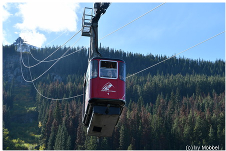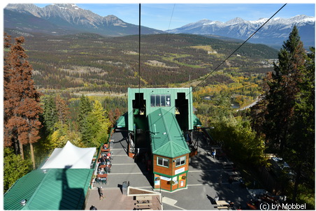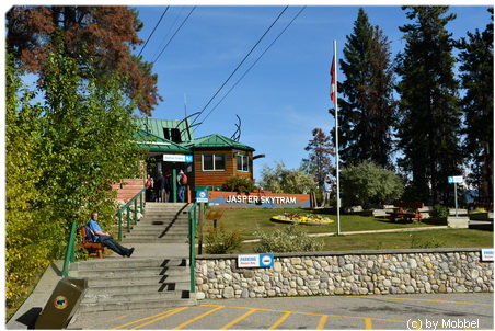 Tja was nun, sind schon den ganzen Tag am diskutieren, ob wir mit der Seilbahn auf den Whistler’s Mountain fahren wollen – teuer – Schlange stehen? Aber Kaiserwetter – besser geht’s nicht. Also nochmal tanken in Jasper (Verbrauch 18,2l/100km bei 328 km) und rauf geht’s zur Talstation der Jasper Tramway. Finden problemlos einen Parkplatz (es war genau noch einer frei) und stellen fest, dass an der Kasse auch keine Schlange ist. Allerdings müssen wir auf die Gondel dann doch noch 20 Minuten warten, weil eine Servicefahrt dazwischen ist. Mittlerweise ist es schon Mittag durch und wir sind sehr hungrig, kaufen ein masslos überteuertes Sandwich an der Talstation.