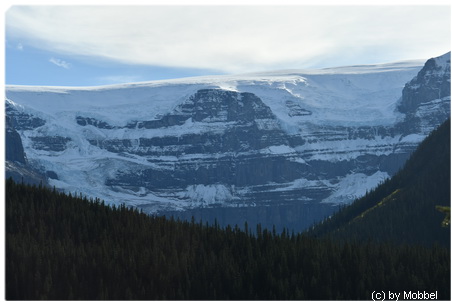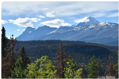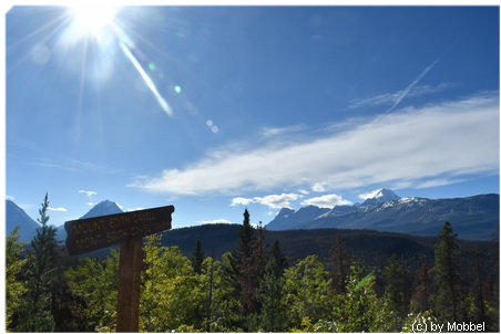 Die Aussicht oben ist genial, Fernblick ohne Ende, puderzuckerbestäubte Berggipfel und den Mount Robson sieht man auch, obwohl der nun wirklich recht weit weg ist (ca. 80-90 km).