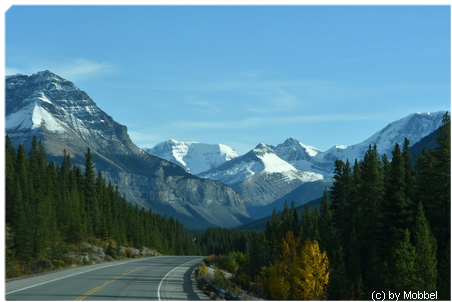 Es gibt Chips beim Fahren, wir sehen noch Wapitis und begeben uns auf den Icefields Parkway nach Süden – bei diesem Wahnsinnswetter kann man unmöglich im Wald auf dem Campground sitzen.