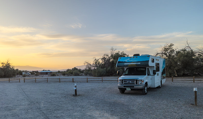 Gegen Sieben kamen wir dann in Furnace Creek an, mussten erstmal rausfinden, wo man sich für den zu einem Resort gehörenden Furnace Creek Ranch Fiddler´s Campground anmelden konnte (wir hatten vorgebucht - die staatlichen nehmen keine Reservierungen ab Mai mehr entgegen, wenn sie überhaupt offen haben) und standen dann gegen halb Acht auf einem nahezu leeren Schotterplatz, auf dem sich neben uns nur wenige weitere RVs und Zelte befanden. Es war vollkommen ruhig auf dem Platz - nichts mit Generatorenlärm, der einem den Schlaf raubt, wovor bei diesem Platz (keine Stromanschlüsse) gerne gewarnt wird - und das abendliche relaxen im Swimmingpool des Resorts (Nutzung im Preis inbegriffen) war einfach nur grandios: