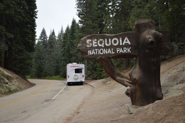 Endlich waren wir am Eingang des Sequoia and Kings Canyon NP angekommen. Meine erste Frage bei der Einfahrt war natürlich ob die Ranger wüssten ob auf dem Lodgepole CG noch ein Stellplatz frei wäre. Die Antwort war wenig zufriedenstellend: We don't know - you have to ask at Lodgepole. Na vielen Dank. Ich dachte ja man würde wenigstens mal kurz 'durchklingeln' damit wir uns die Fahrt sparen könnten wenn er jetzt schon voll wäre. Wir fuhren also weiter.