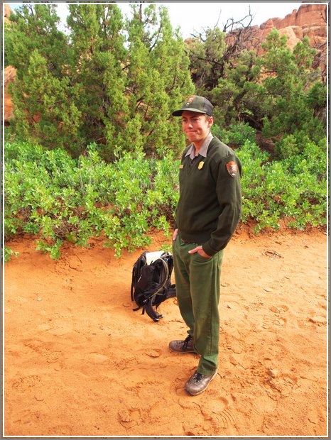 Dem Forum hier sei gedankt für den tollen Tipp mit der Fiery Furnace Tour. Wir hatten diese bereits Monate vorher für heute 9 Uhr gebucht. Pro Person waren 16 $ fällig. Und wir wussten auch aus dem Forum, dass wir die Karten gleich bei der Einfahrt in den Park im VC abholen müssen.