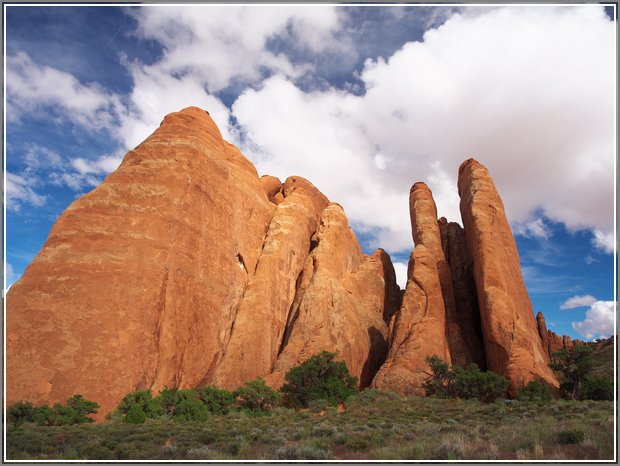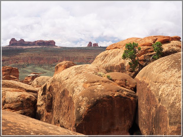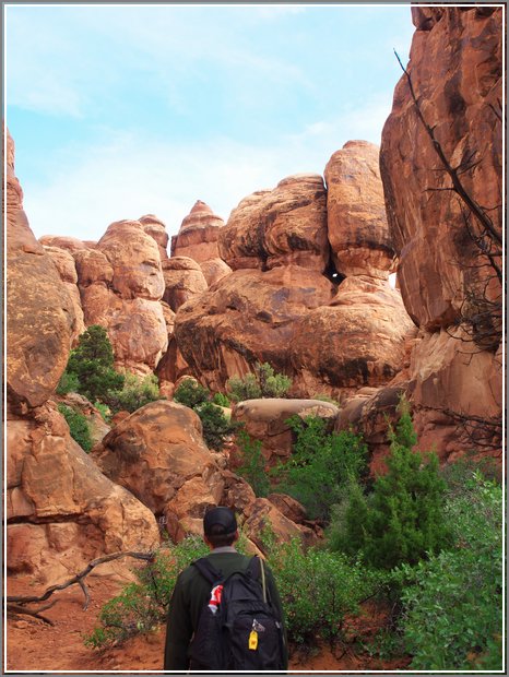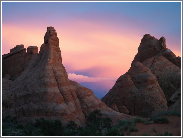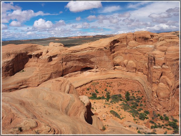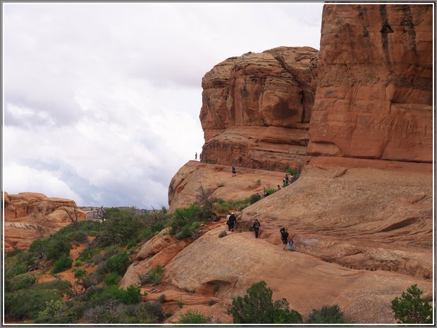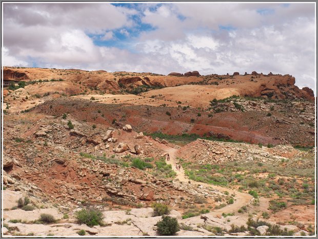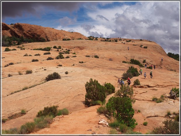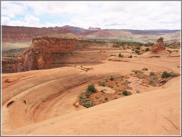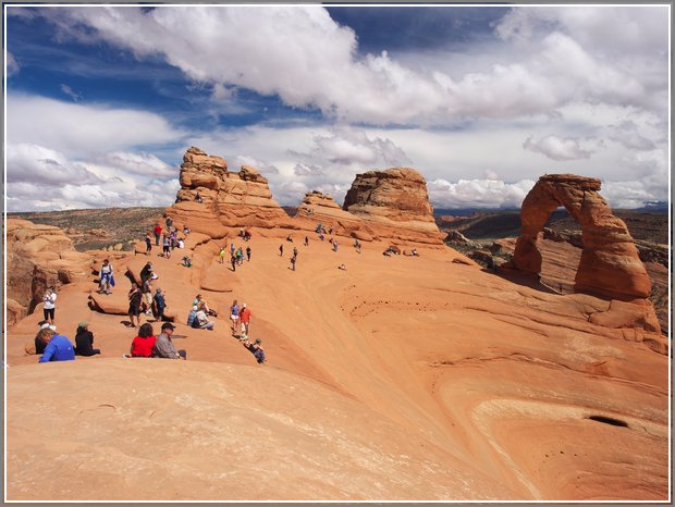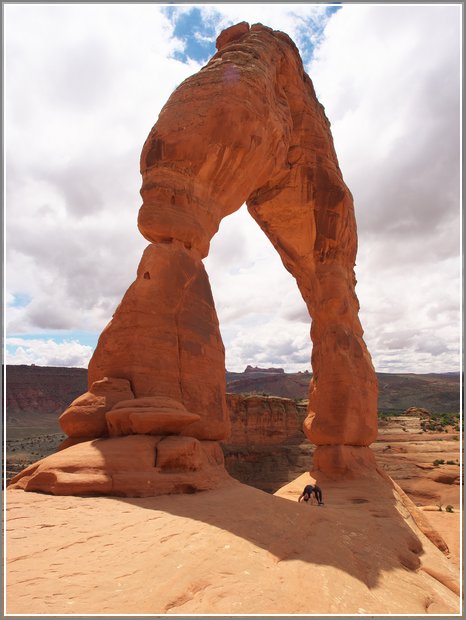 So, jetzt stand großes Beratschlagen an. Eigentlich wollte ich am Delicate Arch den Sonnenuntergang erleben. Allerdings war es heute sehr unsicher, dass es dort auch einen schönen Sonnenuntergang gibt. Es könnte auch regnen. Nach dem Motto "lieber den Spatz in der Hand als die Taube auf dem Dach" machten wir uns gleich auf zum Delicate Arch, denn noch war das Wetter gut genug für dieses Unternehmen. Wir wussten nicht, wie sich das Wetter zum Abend hin entwickelt.