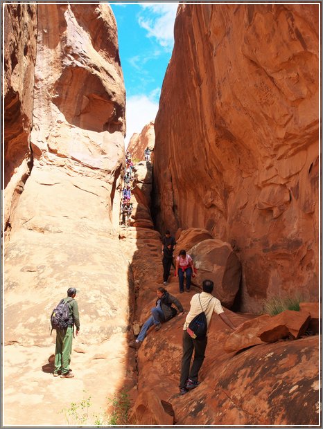 Tja, Massenbetrieb war angesagt. Das war uns im Vorfeld klar. Gut ist die Ameisenkolonne weiter oben im Fels zu sehen. Und wir sind auch gleich Bestandteil dieser Ameisenkolonne. Es gibt dann immer wieder sehr emsige und eilige Ameisen - das sind meist asiatische Ameisen. Der Spagat zwischen möglichst schnell hinkommen und möglichst viele Fotos mit möglichst vielen Menschen im Vordergrund zu machen ist oftmals sehr schwierig (und für uns oftmals sehr lustig in der Beobachtung).