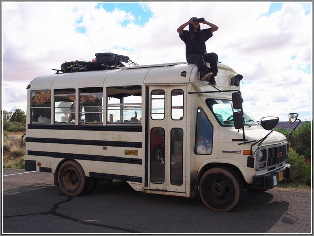 Was der da wohl sieht? Der Typ war nett, sein Gefährt (vor allem im Inneren) "sehr urig"!