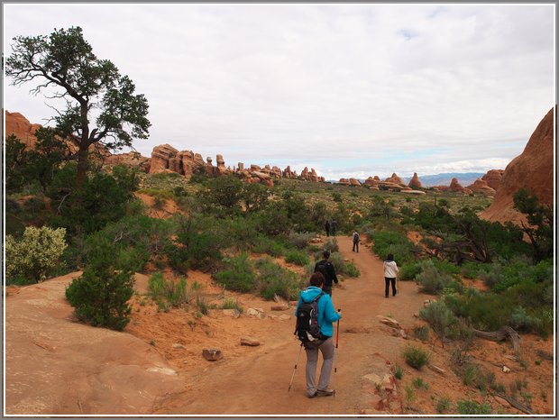 Es war am Anfang noch bedeckt, doch wir hatten Hoffnung auf Sonne. Es waren ja ohnehin noch nicht viele Wanderer unterwegs und ab dem Landscape Arch wurden es ncohmals deutlich weniger.