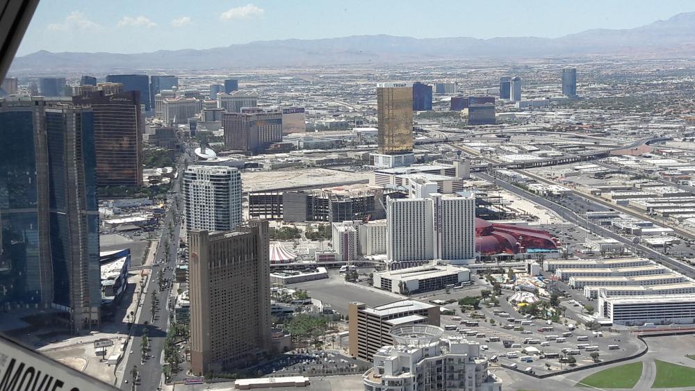 Wir beschließen die Wartezeit auf unsere Koffer mit einem Besuch auf dem Hoteltower zu nutzen. Kostet für Hotelgäste USD 5 (normalerweise USD 20). Die Aussicht ist genial.