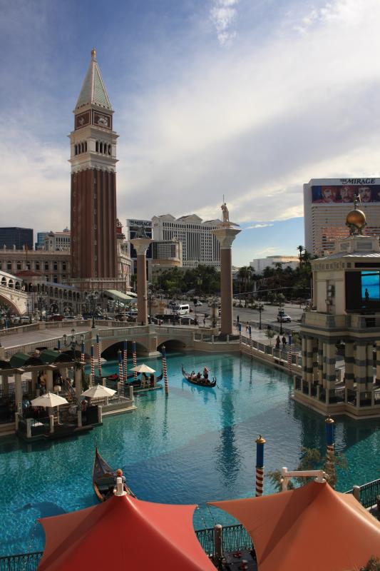 Nachdem um 13 Uhr unser Gepäck noch nicht da ist, fahren wir mit dem Bus zum Strip.