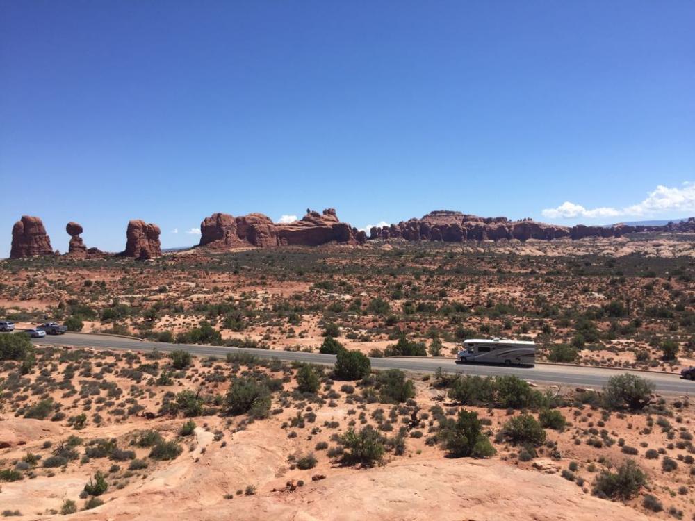 Heute besuchen wir den wunderschönen Arches Nationalpark. Immer wieder stoppen wir auf unserer Fahrt an diversen Aussichtspunkten. Leider ist die Windows Section des Parks wegen Straßenarbeiten komplett gesperrt.