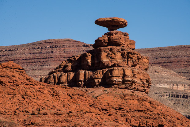 Absolut lohnenswert war auch noch der Abstecher zum Goosenecks State Park mit seinem phänomenalen Ausblick auf die Schluchten des San Juan Rivers. Auf der Weiterfahrt in Richtung Monument Valley kommt man nach einigen Meilen am pittoresken Mexican Hat vorbei. Die Anfahrt zum Monument Valley gibt schon lange im Voraus einen Eindruck davon, was einem im Valley erwartet.