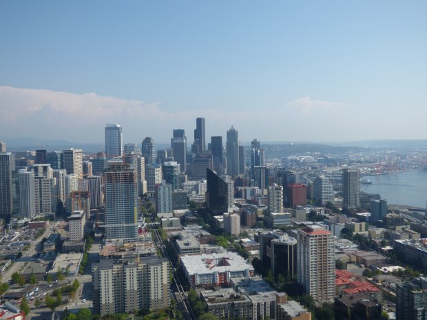 Am nächsten Morgen ging es mit dem Bus los Richtung Seattle. Die Tickets können nur im Bus gelöst werden und man braucht Bargeld und zwar passend. Das sollte uns auf der Heimfahrt noch beschäftigen. Einmal umsteigen an der Terminalstation und man kommt mit der Schnellbahn direkt ins Zentrum nach Seattle.