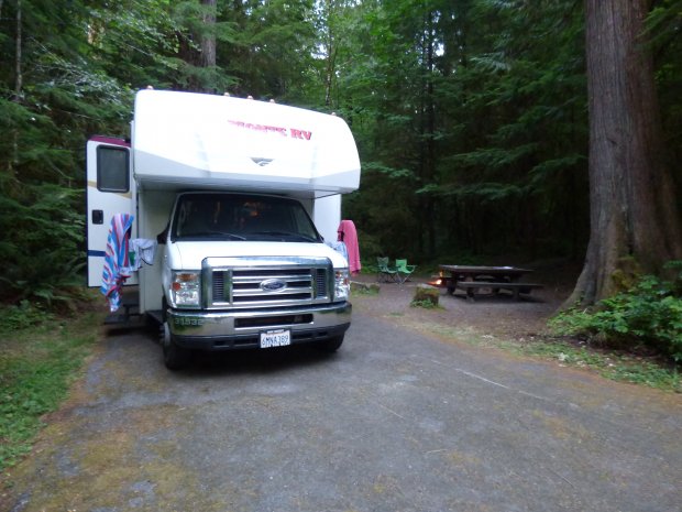 Nur ungern haben wir diesen wunderbaren Ort wieder verlassen und unseren Campground für die kommende Nacht angesteuert. Viele Alternativen gibt es in dieser Region nicht. Daher haben wir uns für den Iron Creek Campground bei Randle entschieden. Ein netter Platz mitten im Grün direkt an einem glasklaren aber eiskalten Fluss gelegen. Die Kinder haben trotz kaltem Wasser das Bad genossen. Am Abend war dann auch endlich Gelegenheit ein richtiges Lagerfeuer zu entzünden.