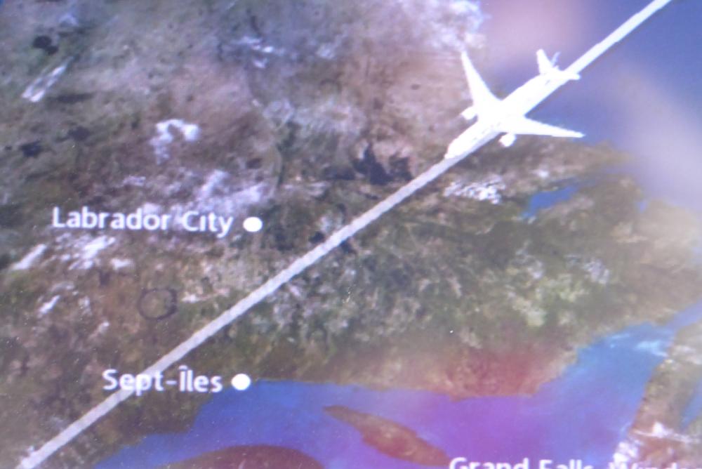 Langsam kommt Kanada in Sicht und zu unserer grossen Freude überfliegen wir Labrador und wir können unsere spätere Route schon mal von oben betrachten:
