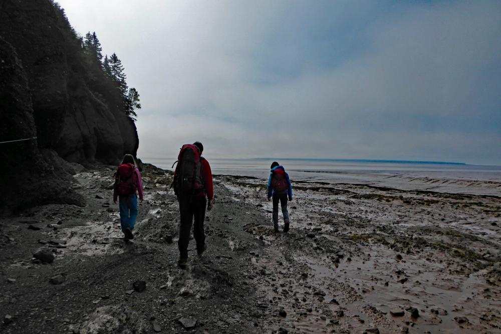 Wir gehen langsam den Strand entlang und bestaunen die durch die gewaltigen Kräfte der Gezeiten entstandenen Felsformationen: