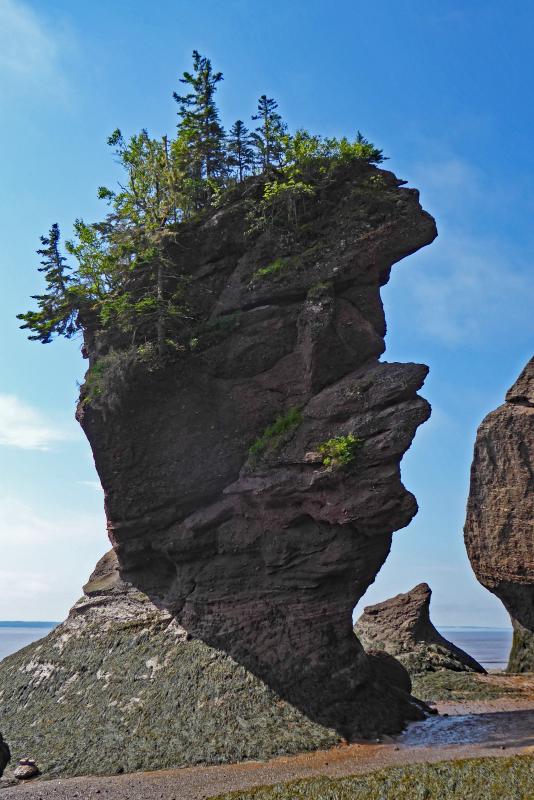 Wir stehen mal wieder früh auf, nutzen die etwas heruntergekommenen aber durchaus funktionstüchtigen Duschen des CG und stehen bereits um kurz vor 08:00 als viertes Fahrzeug in der Schlange vor der noch geschlossenen Schranke an der Einfahrt zum Parkplatz an den Hopewell Rocks. Die Wartezeit nutze ich, um schon mal das Frühstück herzurichten. Wir parken ein, ich koche den Kaffee in die Thermoskanne. Plastik-Geschirr und Thermobecher, sowie alles, was man sonst noch zum Frühstücken braucht, wandert in die Rucksäcke.