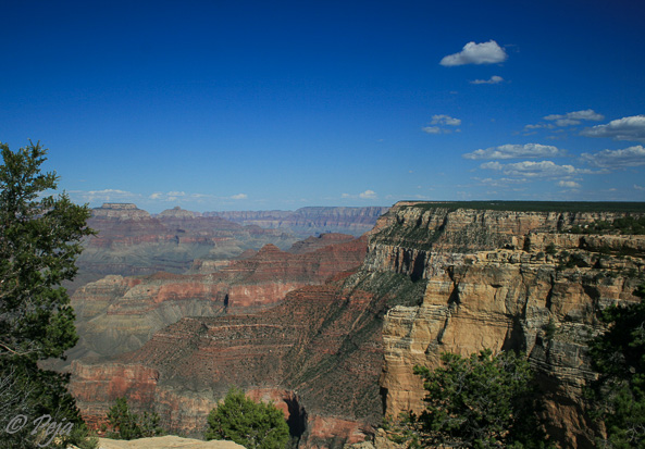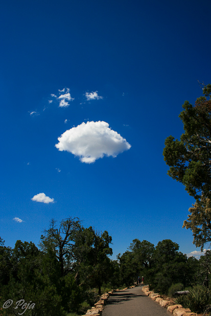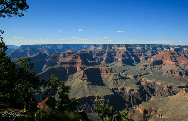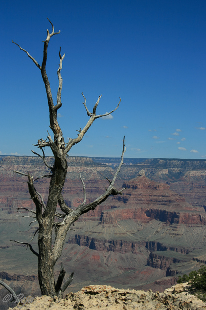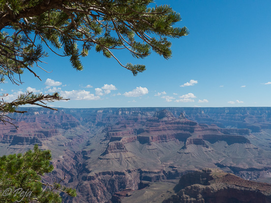 Anschließend – gegen halb 10 - machen wir uns auf die Socken Richtung Bus. Zunächst erkundigen wir uns im Visitor-Center, die warnen, dass es sehr heiß wird und wir nichts zu anstrengendes unternehmen sollen. Wir wollten sowieso am Rim wandern und machen das dann auch, wir laufen vom Mather Point bis zu Verkamp’s Visitor Center, eine sehr schöne und einfache Strecke. Es ist keine Wanderung in dem Sinn, sondern eher ein gemütlicher Spaziergang, wir fotografieren viel und staunen über diese fantastische Landschaft.
