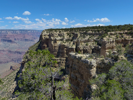 Von den Ausblicken, die sich uns bieten, sind wir wieder einmal schwer beeindruckt. An dieser Strecke wirkt der Grand Canyon noch einmal viel weiter als am Mather Point oder der Strecke, die wir vormittags gelaufen sind. Unglaublich. Wieder machen wir viele Fotos.