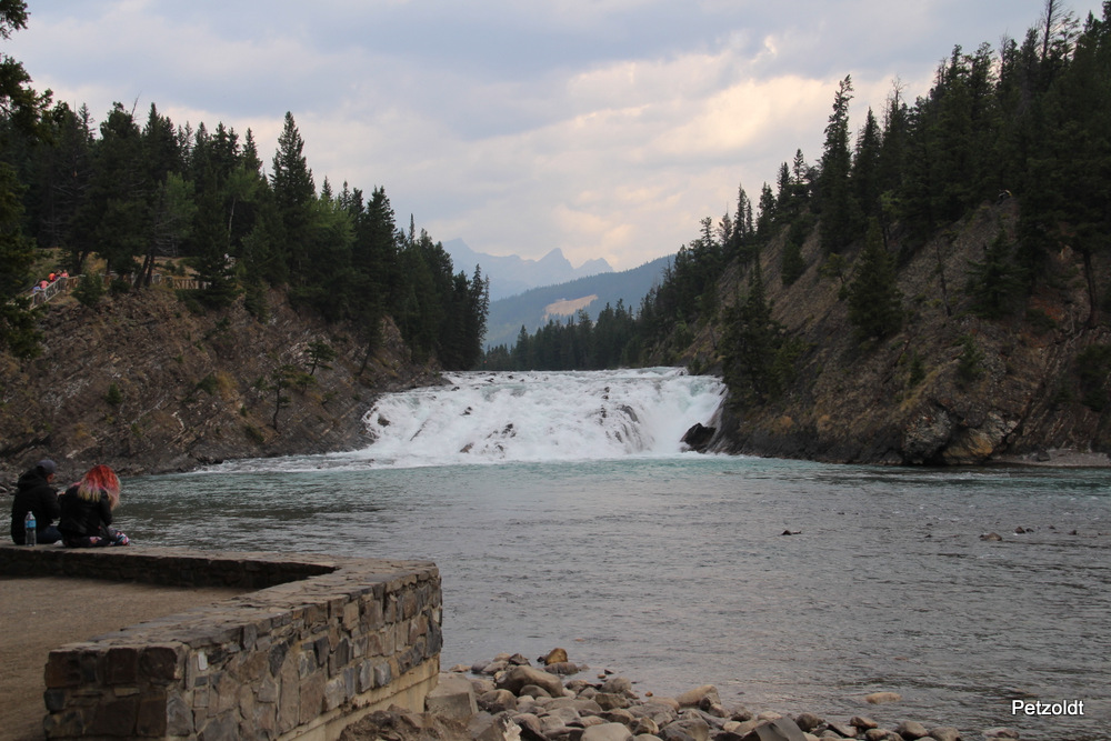 Am Bow Falls Overlook halten wir und gehen runter zum River, aber von hier kann man den Wasserfall nicht sehen, nur vom oberhalb gelegenen Aussichtspunkt. Besser ist es dann von der andern Flußseite aus.