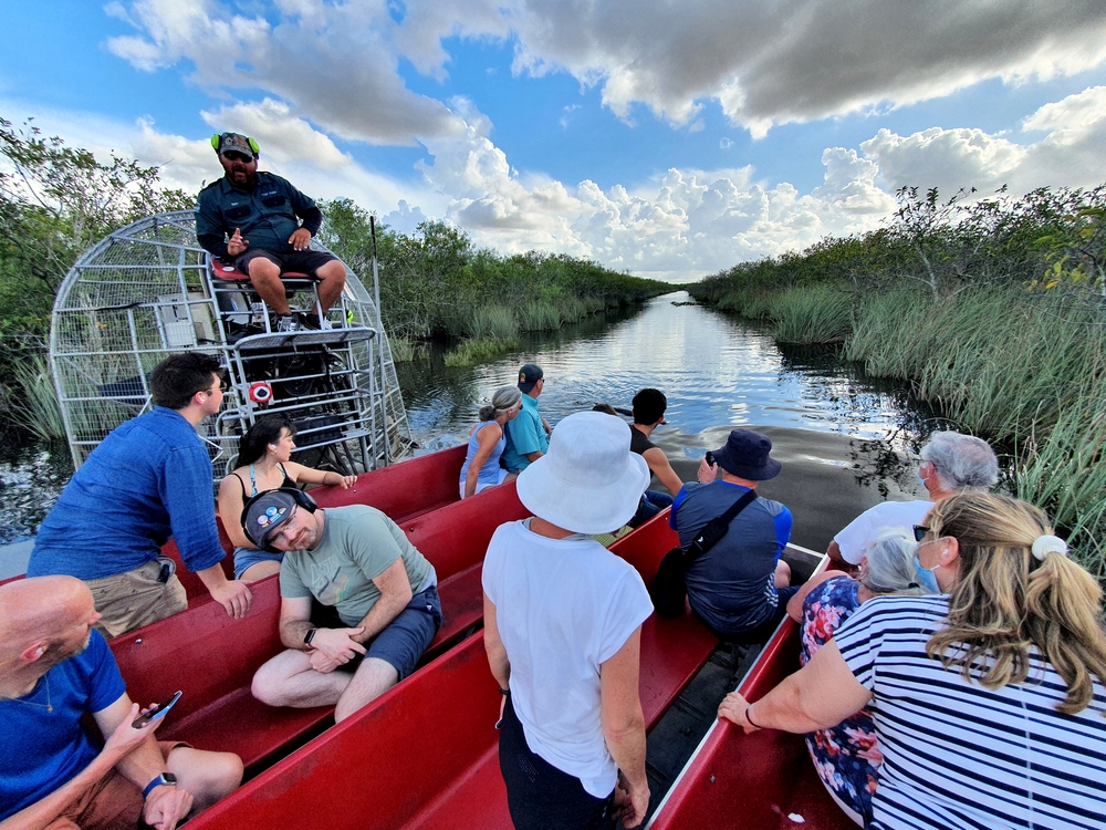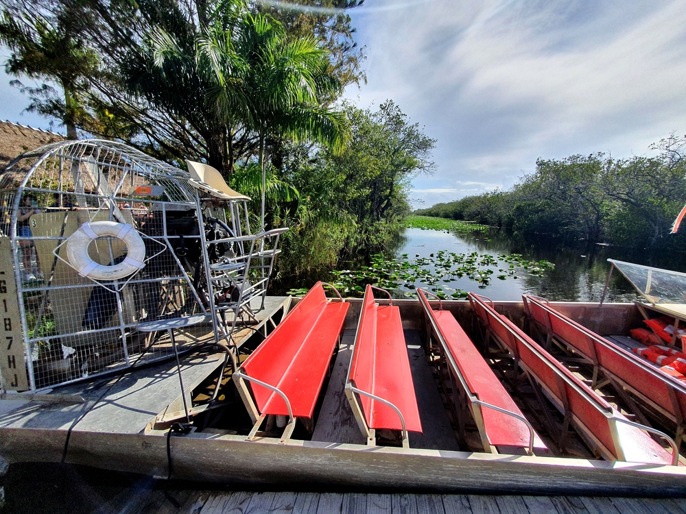 Das war es fast schon mit unserem Kurztrip in den Süden, den letzten Aktivtag haben wir damit verbracht mit dem Mietwagen von Amy&Charlie zwei Nationalparks abzufahren, den Biscayne NP und dann den Everglades NP, aber jeweils nur die Visitor Center, denn wir mussten zwischendurch immer wieder in den RV nach Riley kucken, dem netten Dachshund unserer Freunde. Am frühen Nachmittag wollten wir aber etwas dynamischeres erleben und so entschieden wir nach Coopertown The Original Airboat Tour an der Hwy-41 zu fahren um eine Airboattour zu machen. Früher war ich ja ein entschiedener Gegner dieser lauten Luftgebläse, aber mittlerweile denke ich da etwas anders und wollte einmal diese Erfahrung gemacht haben. Es war dann auch erschwinglich und eine abwechselnde 1,5 stündige Tour am Rande des Everglades NP, die ich mit gutem Gewissen weiter empfehlen kann.