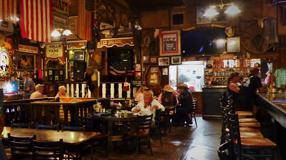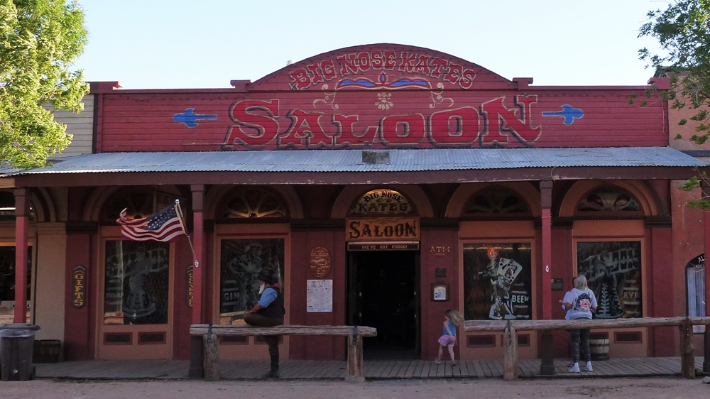 Zuerst wollten wir im Longhorn Restaurant essen gehen, aber es ist uns dort zu steril und ungemuetlich. Da gefaellt es uns im Big Nose Kate´s Saloon schon besser, da ist richtig Stimmung in der Bude. Ein paar Locals schwingen das Tanzbein beim Karaoke. Und die Bedienung war bestimmt eine entfernte Verwandte von Big Nose Kate, sie passt einfach wie die Faust aufs Auge zum Lokal.