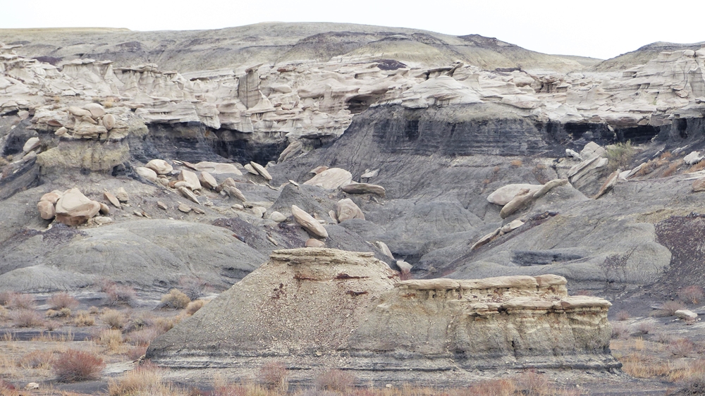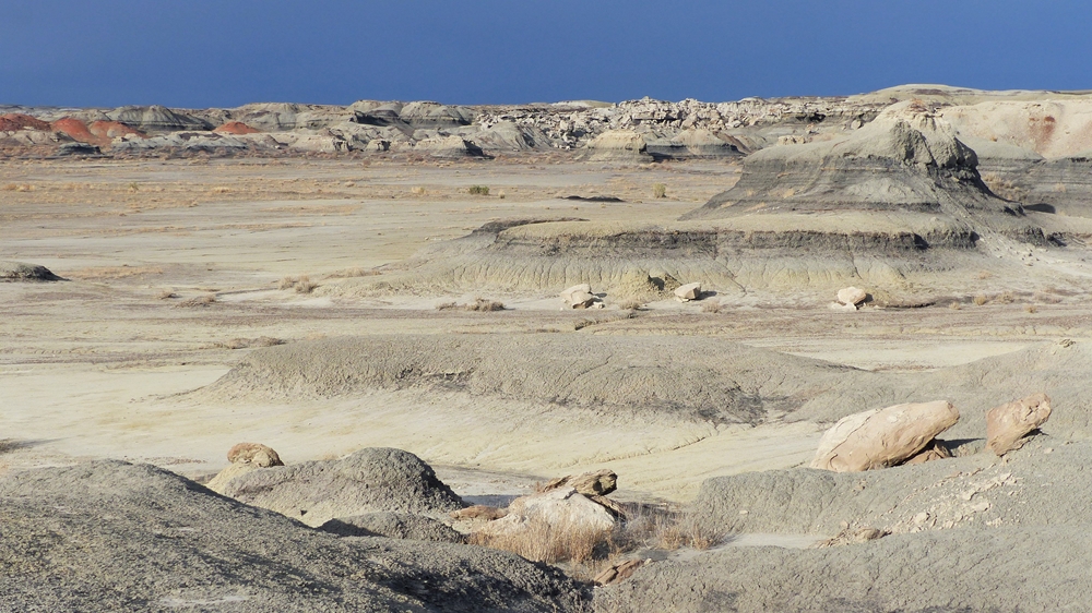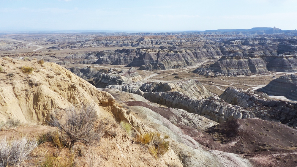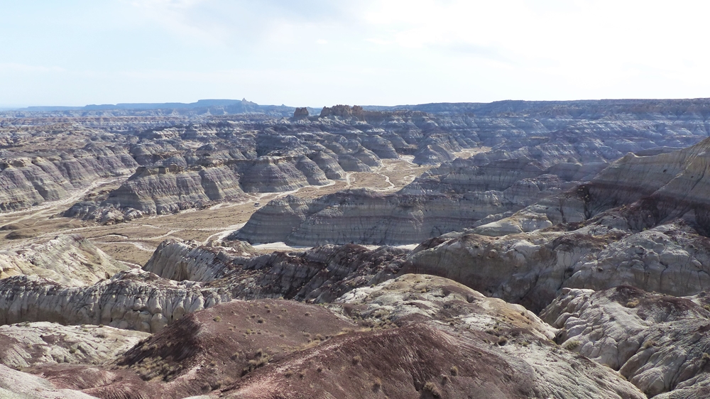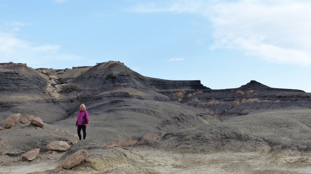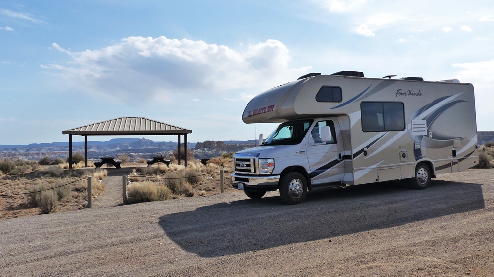 Unser heutiges Ziel ist nicht weit, deshalb lassen wir uns mit der Abfahrt auch Zeit. Wir halten nochmal an den Viewpoints und bestaunen diese unwirtliche Landschaft. Am Rim muessen wir aufpassen, nicht von der Kante geweht zu werden. Dann ruckeln wir zurueck auf den Highway 550 Richtung Bloomfield und dann nach Farmington und anschliessend geht es auf der NM-371 wieder nach Sueden.