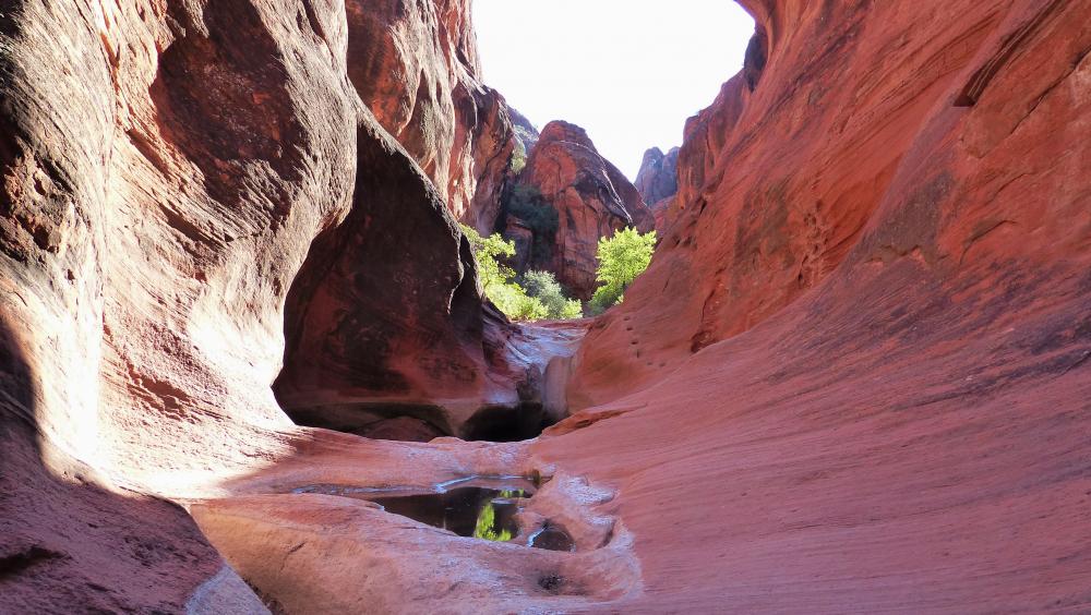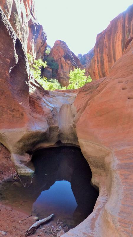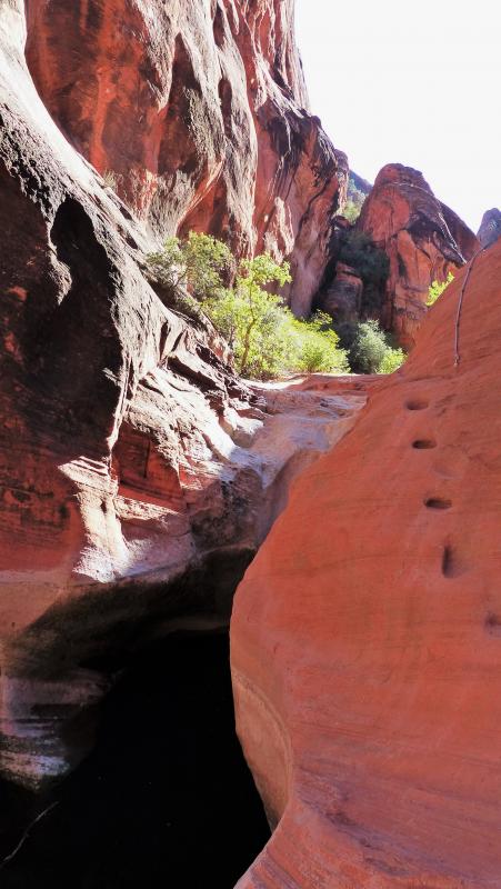 Es ist erstaunlich, dass nach dem vielen Regen der letzten Wochen hier nicht wirklich viel runtergekommen ist. Zumindest ist in diesem Canyon schon sehr lange kein Wasser geflossen, denn auch die Potholes weiter unten sind nicht mehr als dunkle und brackige Tuempel .