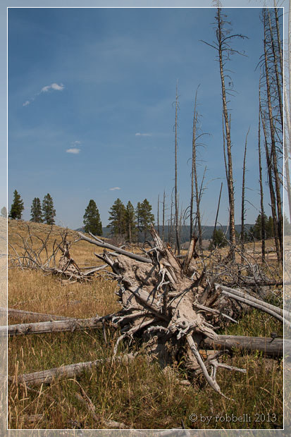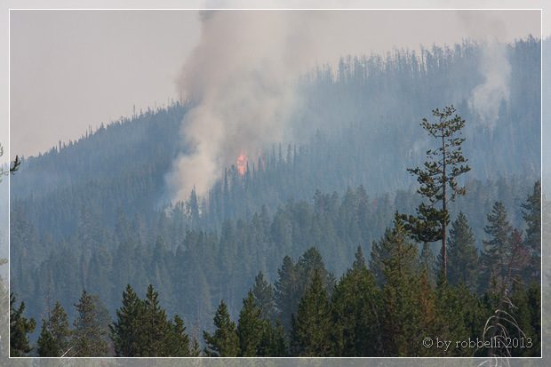 Robert spricht einen Mitarbeiter der „Fire information“ an, der uns sagt, dass es aktuell 6 Waldbrände im Yellowstone gibt. Es sind auch einige Autos unterwegs mit der schlichten Aufschrift „Fire“, deren Besatzung die Brände im Auge behält.